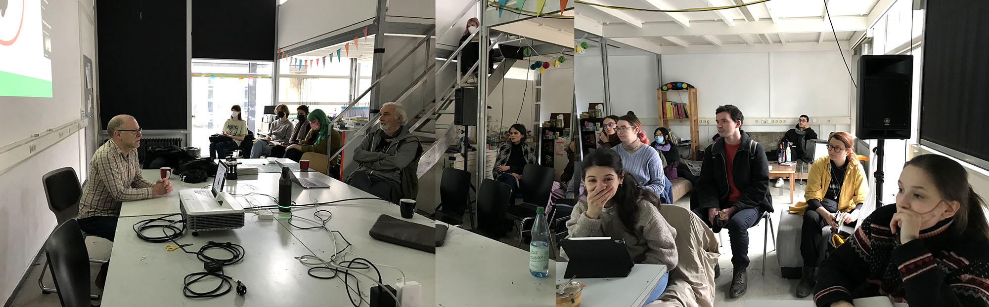 Matthias Bender von der Illustrator*innen Organisation hielt am 10. Januar einen Vortrag über den Einstieg in die Freiberuflichkeit: Steuern, Rechnungen, KSK, Verträge etc.Prof. Tanja Wetzel hielt am 24. Januar, einen Vortrag über den Lehrberuf und die Möglichkeiten des Quereinstiegs.