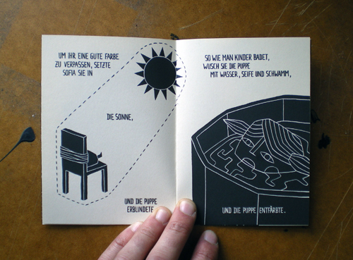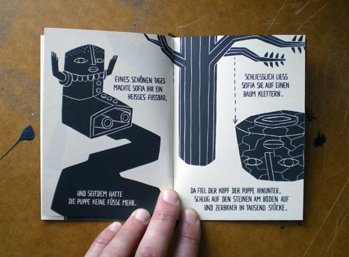 Die Geschichte „Os desastres da boneca de sofia“ der portugiesischen Autorin und Dichterin Adília Lopes erzählt vom kurzen, leidvollen aber auch abenteuerlichen Dasein von Sofias neuem Spielzeug.