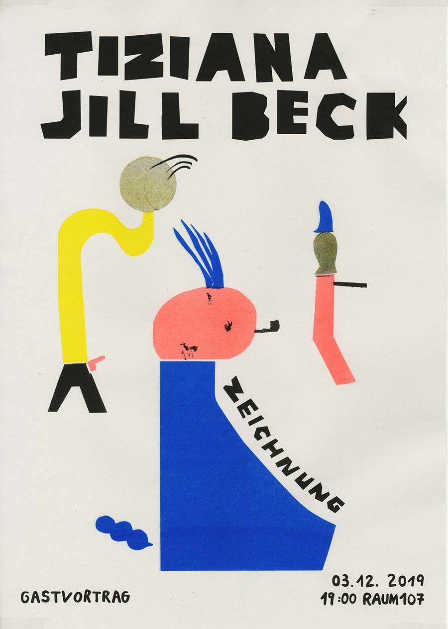 Tiziana Jill Beck studierte an der Kunsthochschule Berlin-Weißensee und an der Hochschule für Grafik und Buchkunst in Leipzig. Die Künstlerin beschäftigt sich mit verschiedenen Formen der Zeichnung, der Druckkunst und künstlerischen Publikationen. Ihre Arbeiten sind in zahlreichen Einzel- und Gruppenausstellungen gezeigt worden.